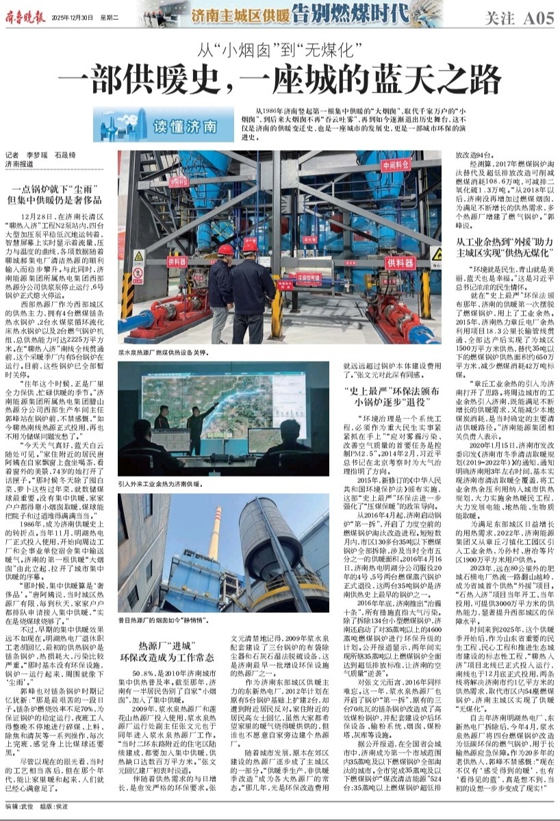 【齐鲁晚报】从“小烟囱”到“无煤化” 一部供暖史,一座城的蓝天之路